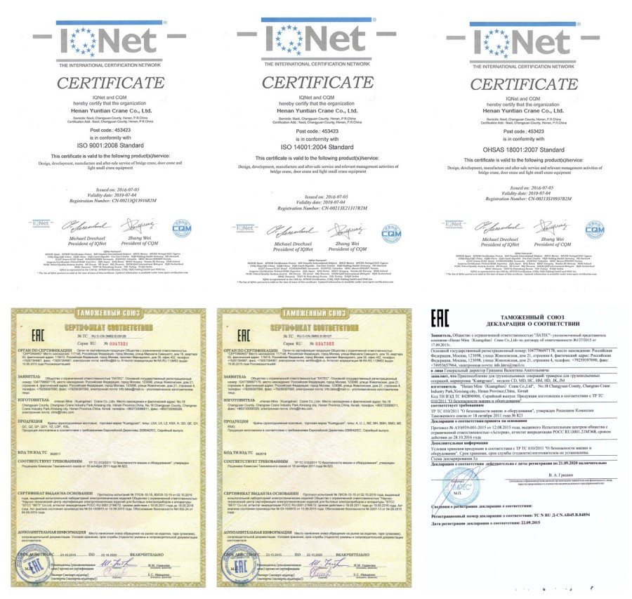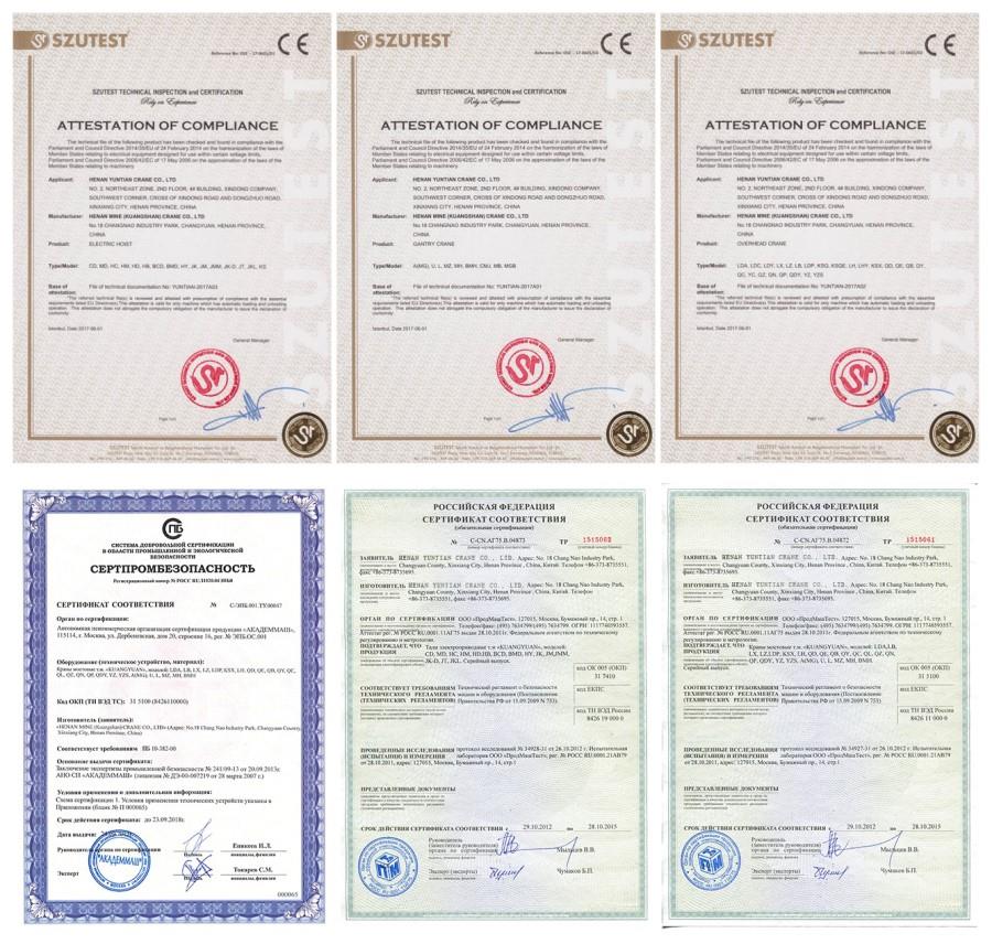 جرثقیل ما CE، ISO، GOST، SGS، TUV، BV و غیره را گذرانده است.